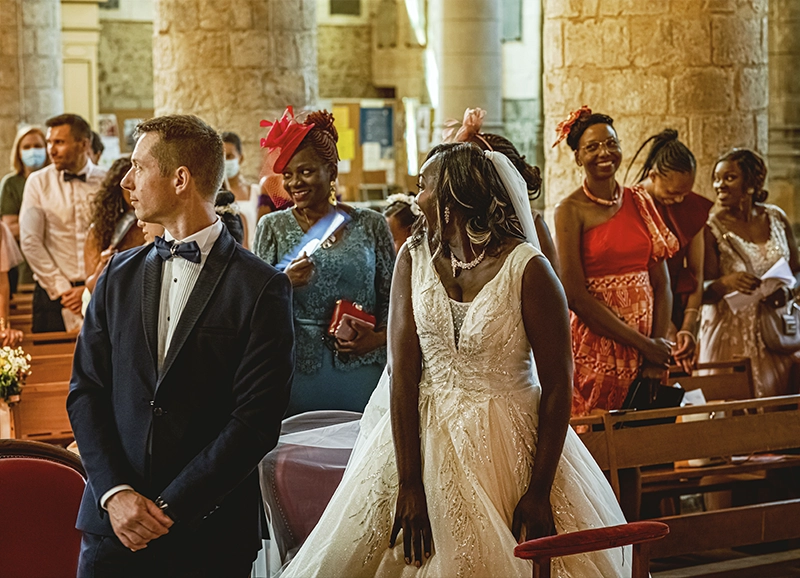 La cérémonie de mariage est le cœur de la journée, qu'elle soit civile, religieuse ou laïque. Chaque type de cérémonie a ses propres rituels et traditions, des échanges de vœux à la signature du registre. Les photos de la cérémonie capturent les moments solennels et émouvants, les regards échangés entre les mariés, et les réactions des invités.